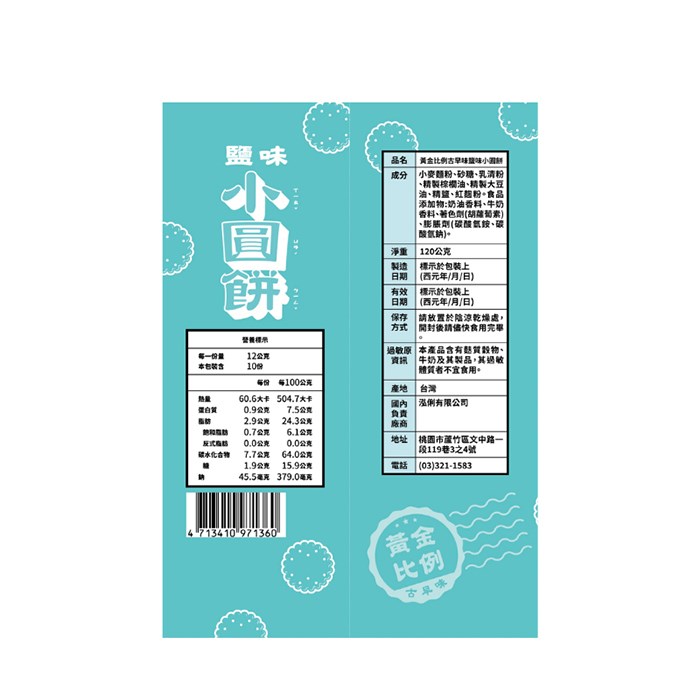內容物(完整成份/食品添加物):小麥麵粉、砂糖、乳清粉、精製棕櫚油、精製大豆油、精鹽、紅麴粉。食品添加物:奶油香料、牛奶香料、著色劑(胡蘿蔔素)、膨脹劑(碳酸氫銨、碳酸氫鈉)。